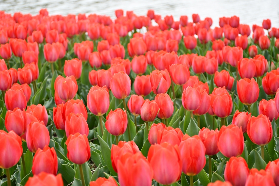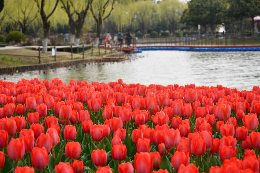 本次花展主打“可步入、可触摸”的沉浸式体验,园内打造了水陆共生的花境。游客不仅可以漫步于郁金香花海中,与花朵亲密接触,还能泛舟水系之上,从另一个角度欣赏烂漫春色。