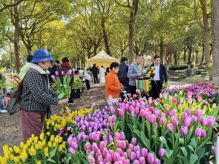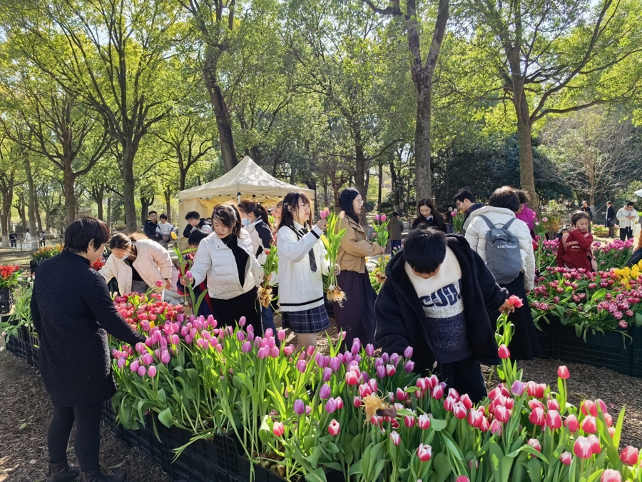 花展还营造了“赏花+采摘”的一站式体验。在鲜花采摘园,游客可以亲手剪下含苞待放的玫瑰或带着晨露的郁金香,将春天带回家。